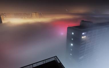 人们常常将雾和霾混为一谈,实际上二者是有区别的。雾是指在相对高的空气湿度下,在贴近地面的空气中形成的几微米到100微米,肉眼可见的微小水滴(或冰晶)的悬浮体,是一种自然的天气现象。由于液态水或冰晶组成的雾散射的光与波长关系不大,因而雾看起来呈乳白色或青白色。而霾则是悬浮在空中肉眼无法分辨的大量几微米以下的微粒, 使水平能见度小于10千米的天气现象。