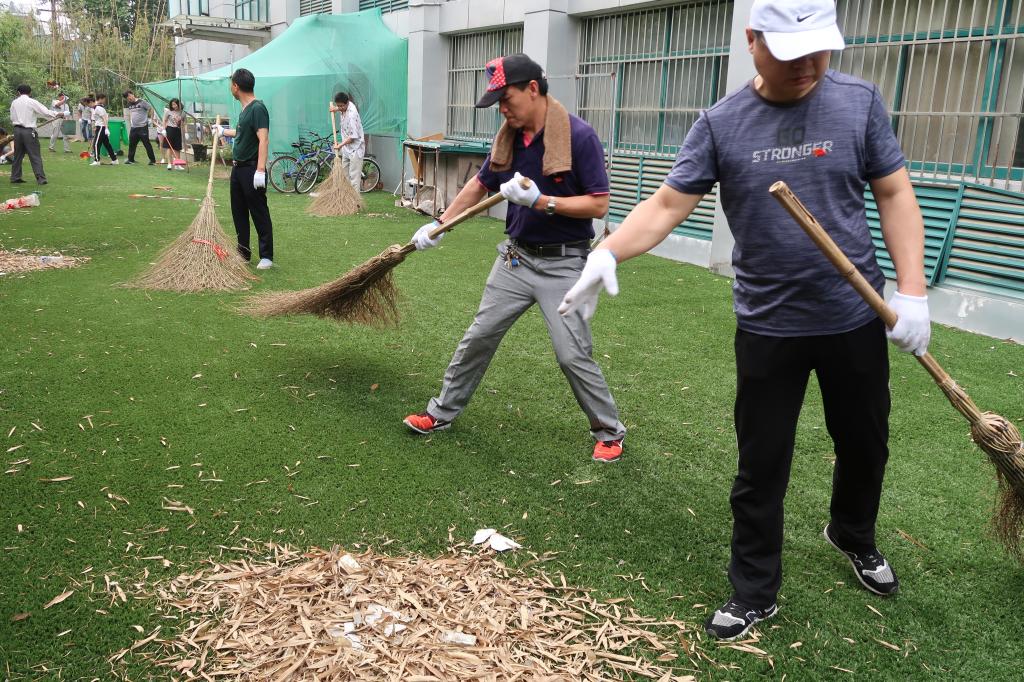 上午8点半,天气格外炎热,在劳动过程中,后勤集团领导身先士卒,以身作则。在他们的感染下,大家积极投入劳动中,有的弯腰捡拾枯竹叶、有的用扫帚扫、有的推着垃圾桶,运送清理出的垃圾,大家不畏热、不怕脏、不喊累、不放过任何卫生死角,干得热火朝天,汗流满面,忙碌的身影形成了一道亮丽的风景线。经过一个多小时的辛勤劳动,办公楼平台上面的垃圾、杂草、枯树枝等全部清理干净,为师生员工提供一个干净整洁的校园环境,彰显党员全心全意为人民服务的宗旨,发挥了党员的先锋模范作用。