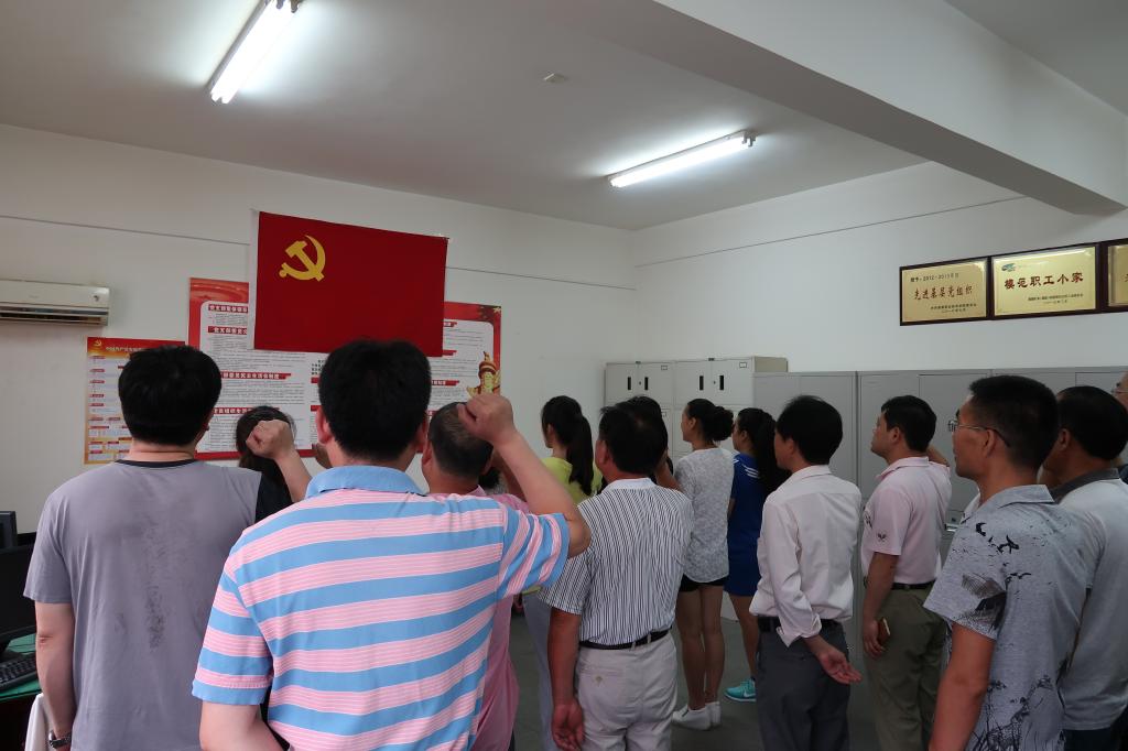 上午8点,后勤集团党总支全体党员在庄严的党旗面前,在党总支书记万丽萍的带领下,重温了入党誓词,再次感受了作为一名党员所肩负的神圣职责和使命。